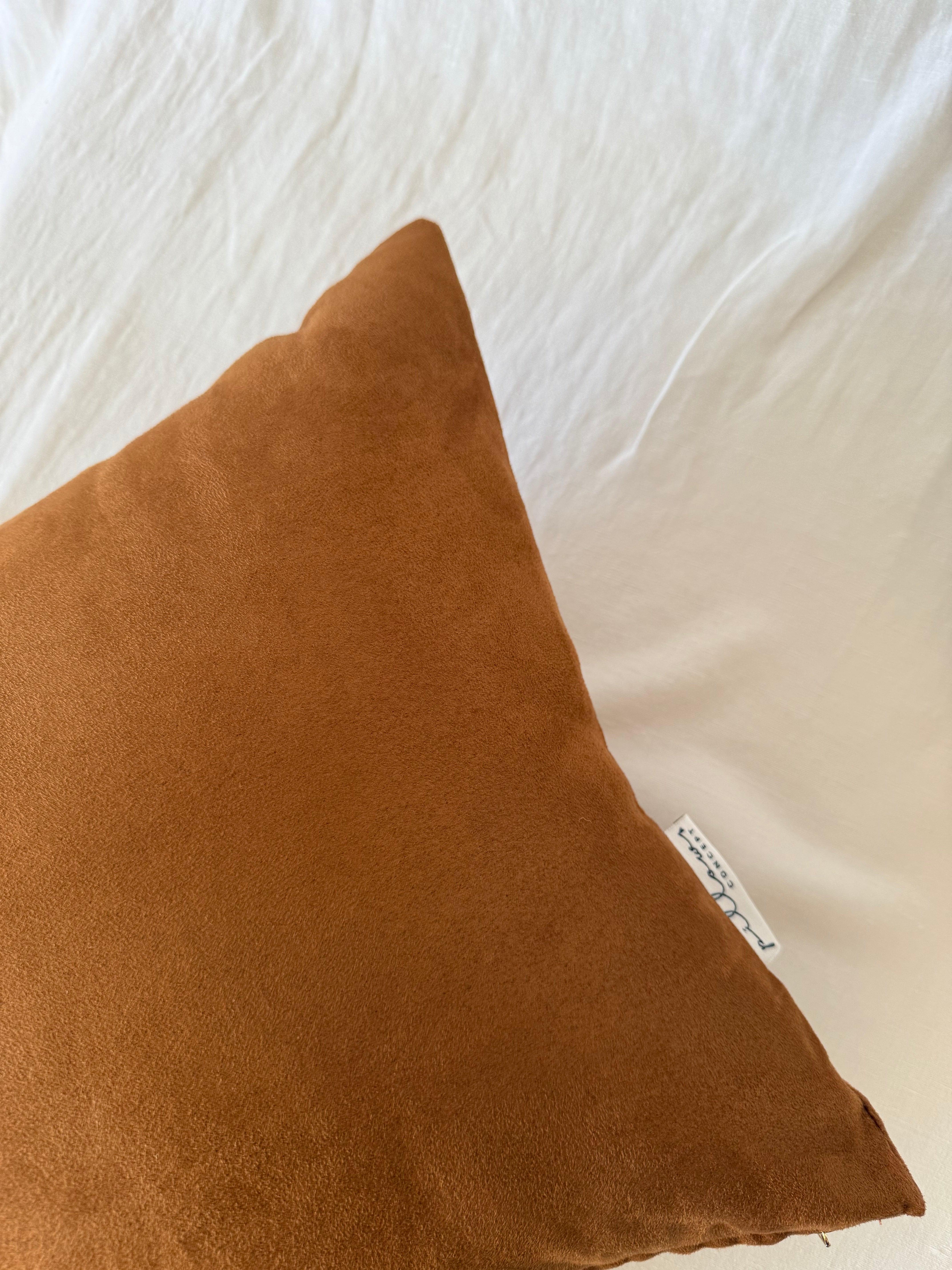 Πολυτελές alcantara ύφασμα και πλούσια ζεστή ταμπά απόχρωση αναδεικνύουν αυτό το μαξιλάρι στο απόλυτο timeless σχέδιο, που εναρμονίζεται τέλεια σε κάθε διακοσμητικό στυλ. Η απαλή υφή και η διακριτική λάμψη του υφάσματος προσδίδουν σε κάθε χώρο ένα διαχρονικό και αναμφισβήτητα κομψό αποτέλεσμα.